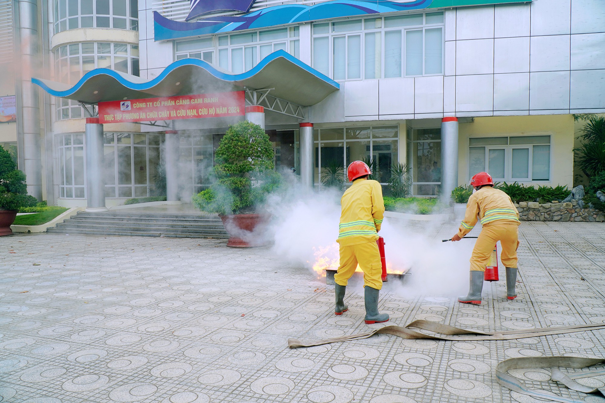 Một số hình ảnh của buổi thực tập phương án chữa cháy và cứu nạn cứu hộ tại Cảng Cam Ranh: