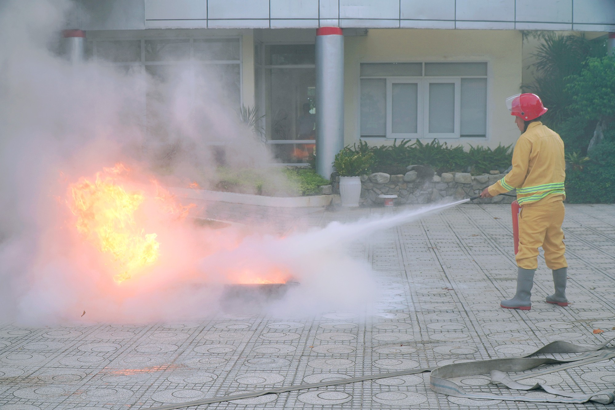 Phương án thực tập bao gồm các giải pháp thoát nạn, phương pháp sơ cấp cứu ban đầu của lực lượng PCCC tại chỗ, và triển khai tốt phương châm “4 tại chỗ”: chỉ huy tại chỗ, lực lượng tại chỗ, phương tiện tại chỗ và hậu cần tại chỗ.